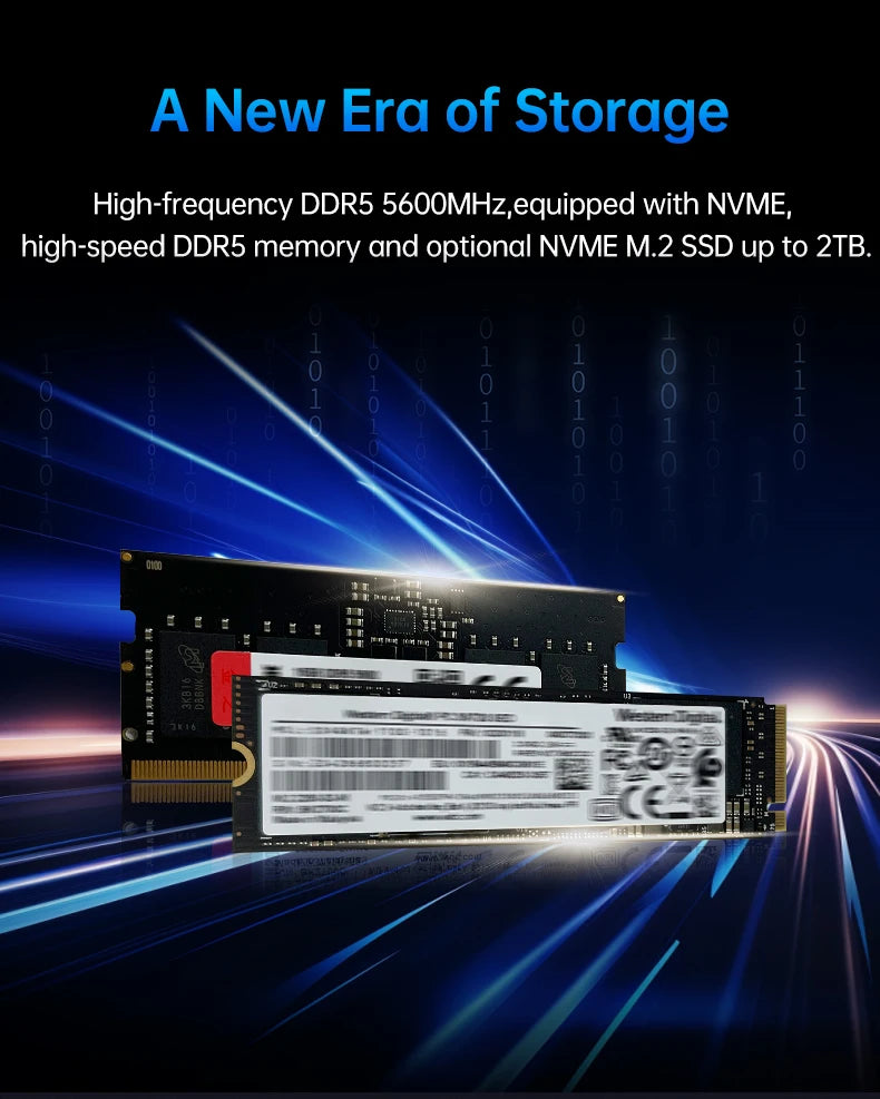 💾 2x DDR5 + 2x M.2 NVMe: Memoria y almacenamiento de alta velocidad para carga y ejecución instantánea.