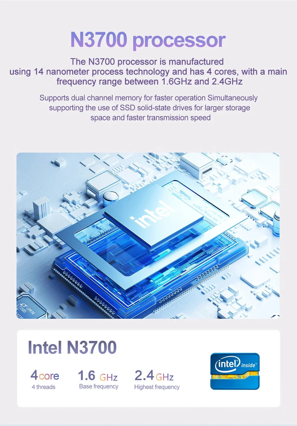 💡 Procesador Intel N3700: Rendimiento equilibrado para multitareas, productividad y entretenimiento.